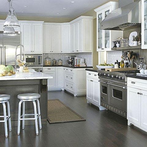 Xu hướng phổ biến là dùng các loại tủ bếp có các thiết bị bếp được thiết kế âm bên trong vì sẽ giúp cho khu vực bếp trở nên rộng rãi, sang trọng. Ngoài ra, để tiện tay làm bếp, việc thiết kế những hệ thống kệ treo một cách khoa học xung quanh khu vực nấu nướng vẫn luôn được ưa chuộng.