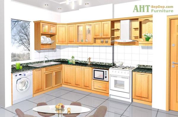Tủ bếp gỗ Tần Bì chữ L thiết kế đơn giản với vẻ đẹp bán cổ điển – TBT1921