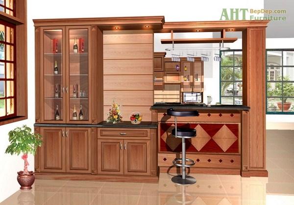 Tủ bếp gỗ Sồi thiết kế bán cổ điển phù hợp không gian bếp rộng – TBT1939