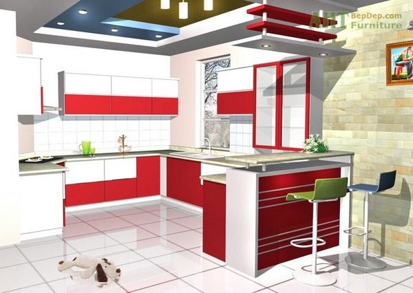 Tủ bếp gỗ Acrylic chữ U thiết kế hiện đại có quầy bar –TBT1932