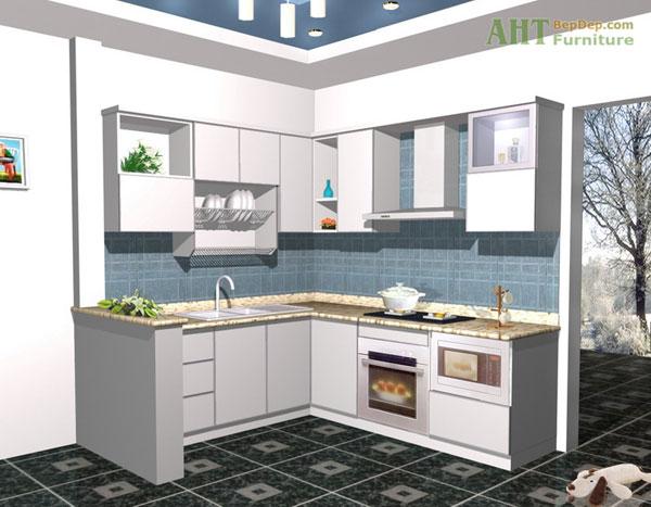 Tủ bếp gỗ Acrylic chữ L thiết kế độc đáo với màu trắng sang trọng – TBT1971