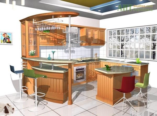 Tủ bếp gỗ Tần Bì thiết kế bán cổ điển có bàn đảo tiện dụng – TBT1997