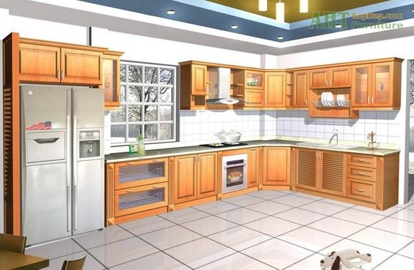 Tủ bếp gỗ Laminate chữ L thiết kế phù hợp với không gian bếp rộng – TBT1914