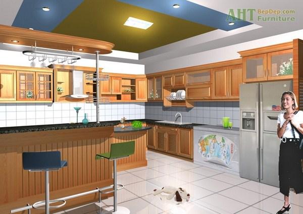 Tủ bếp gỗ Gíang Hương thiết kế bán cổ điển có bàn đảo tiện dụng – TBT1964