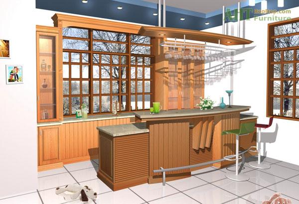 Tủ bếp gỗ Căm Xe thiết kế bán cổ điển có bàn đảo tiện dụng – TBT1943