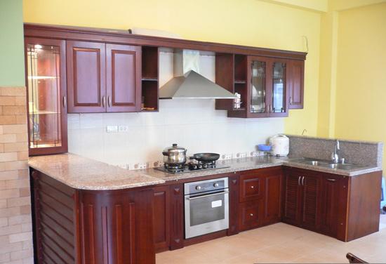 Mẫu tủ bếp đẹp gỗ Xoan Đào dạng chữ U- TBCU111
